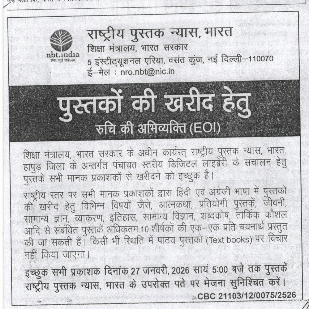 EOI for Supply of Books for Panchayat Level Digital Libraries under Hapur District